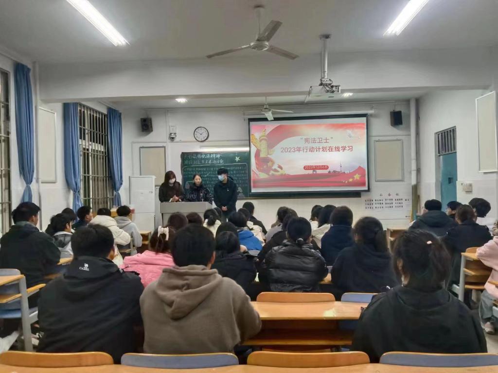 在学院引导下,本科生各年级有序开展线上线下相结合,形式多元的宪法学习活动,积极参与“学宪法 讲宪法”行动,依托教育部青少年普法网线上学习平台,组织同学们有序观看宪法知识网课,学习相关内容并且完成课后测试,既加深了同学们对宪法的认识,又进一步营造了班级良好的法治教育氛围,培养了学生知法守法的思想意识,更加深刻地理解宪法内涵。