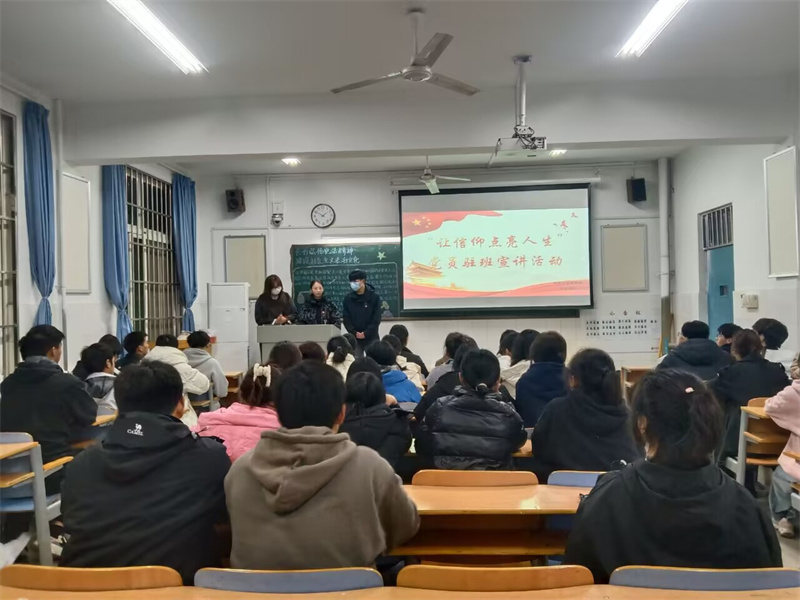 活动伊始,驻班党员们进入各班级,与同学们进行面对面的宣传和交流。在这一过程中,他们结合自身的成长经历和学习体会,不仅向同学们讲解了党的基本知识、党的历史和党的路线方针政策,引导同学们树立正确的世界观、人生观和价值观,还强调入党是一种责任与使命,考验的是大家的毅力与心态。活动末,各位驻班党员结合自身入党历程和同学们探讨了为什么要入党及如何加入党组织的问题,使同学们更加了解入党流程,更加明确入党动机。