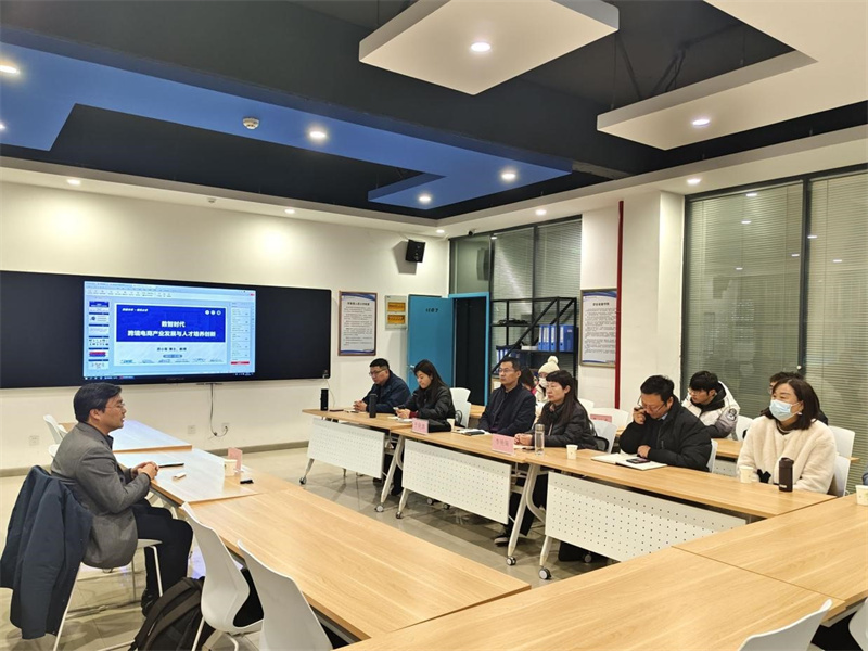 随后厉教授在综合实验楼S107开展了“数智时代跨境电商产业发展与人才培养创新”为主题的讲座,学院领导老师和电子商务专业的学生参加,讲座由于晓胜教授主持。厉教授从数字技术和商业发展历史系统讲述了技术创新发展和商业演化对产业转型和发展的影响,从大数据、人工智能、元宇宙等阐述了跨境电商产业发展的痛点及人才培养的方向,从前沿技术创新、服务产业发展分享了杭州前沿技术研发对跨境电商模式的创新,内容丰富、干货满满,引起了老师和同学们对人工智能、数字技术、元宇宙以及产业数字化转型发展、品牌化塑造等多方面的深度思考,并针对相关问题与厉教授进行了交流。于书记代表学院对厉教授的精彩讲座表示感谢,希望老师和同学们能够在跨境电商领域综合运用厉教授讲授的知识积极探索,积极借鉴相关经验并结合自身发展的需要,进一步探索出学科建设和专业发展的新思路和特色路径。
