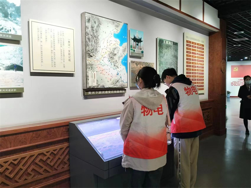 作为世界上最早建立的水利行业博物馆,黄河博物馆是我国唯一以黄河为主题陈列内容的自然科技类博物馆,以黄河为基本陈列的主线,生动展示了中华民族的摇篮——黄河流域的地理、地貌、气候等自然概况,灿烂的黄河文化。学员们跟随讲解员的步伐依次穿过展厅,在视听盛宴中深化了对黄河文化、民族精神的体悟。在实践活动与参馆中我们深刻了解了我国对黄河开发利用情况以及远景规划等。学员们认真学习了黄河自然史、文明史、历代治河史、新时期治河新理念和实践等内容,对黄河流域孕育的中华文明及其传承发展有了更全面的认识。在我们眼前呈现的一幅幅展品共同描绘出了一幅使古老的黄河焕发青春的美好蓝图。