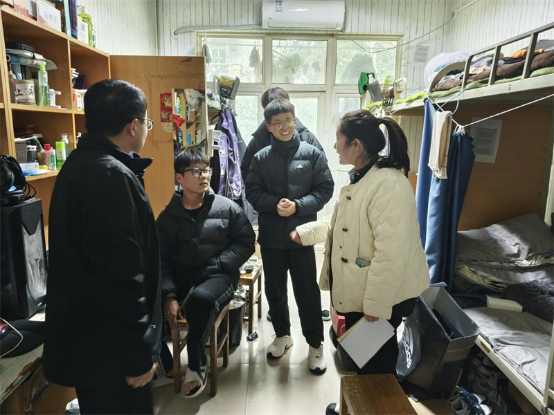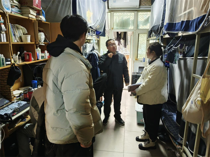在走访过程中,申老师与尚老师详细了解了同学们的学习和生活情况,询问了大家在冬季供暖、用电等方面是否存在问题。他们还对宿舍内的电线、插座、暖气、消防等设施进行了详细的检查,确保所有设施都能正常使用,没有安全隐患。在检查过程中,申老师与尚老师发现一些宿舍存在卫生条件差等问题,他们立即指导同学们进行整改,并强调了生活卫生环境的重要性。除了宿舍安全排查,申老师与尚老师还向同学们送上了温暖的慰问。他们鼓励同学们要保持良好的学习和生活习惯,关心自己的身体健康,同时也要关心周围的同学,共同营造一个温馨、和谐的宿舍环境。