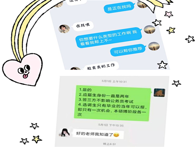 该活动主要面向目前尚未就业的毕业生,由毕业班辅导员通过电话、QQ、微信、面谈等多种方式,与未就业学生进行沟通交流,了解每一位学生的目前就业状况、 面临问题以及未来规划。辅导员老师们聆听了同学们的心声后,制定出针对他们的解决方案和对策,帮助他们找寻就业机会,解决面临的问题,顺利实现就业!