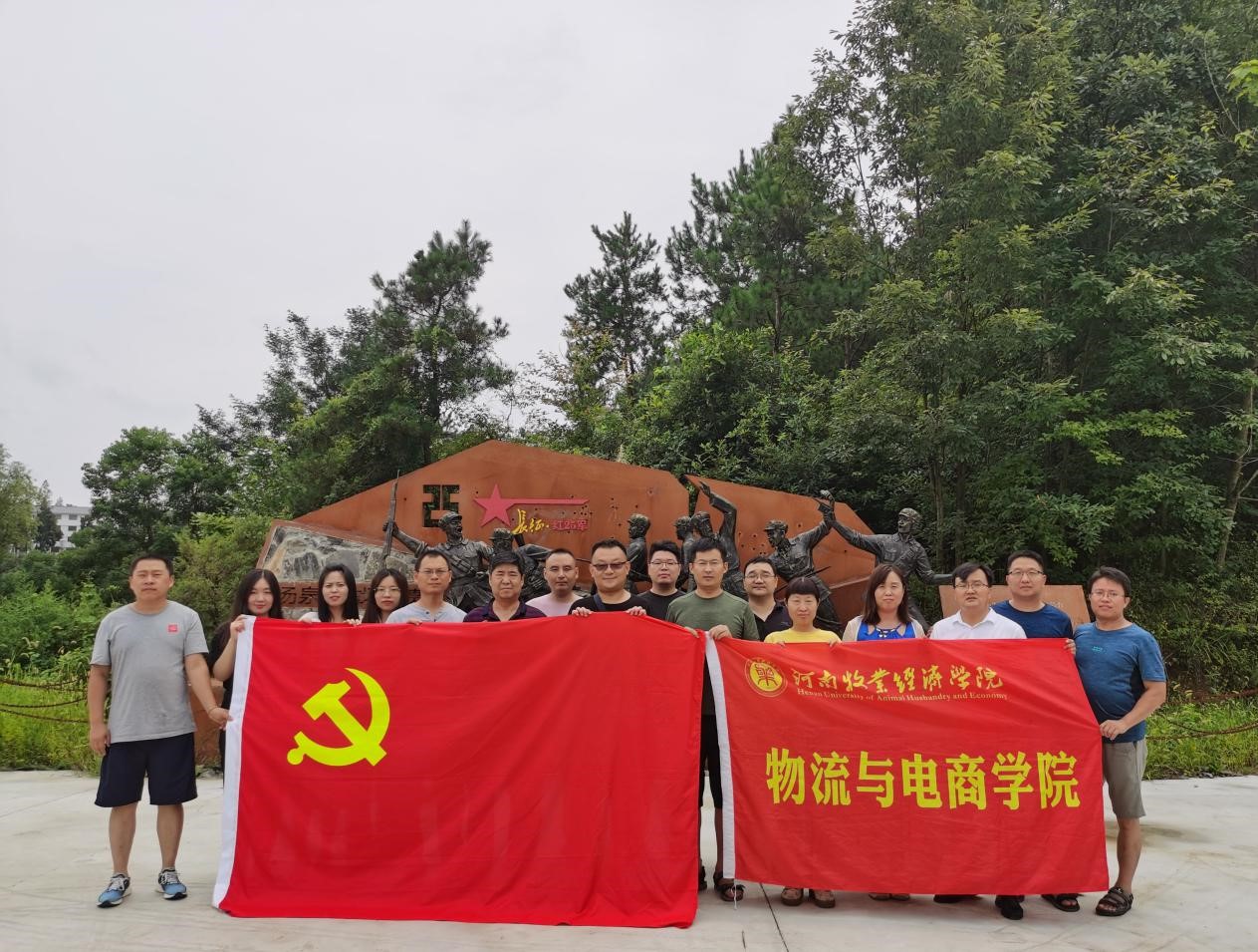 7月19日,在学院领导的带领下,教师们追寻先辈足迹,重走红二十五军战斗过的地方,并在红二十五军战斗遗址拍照留念。