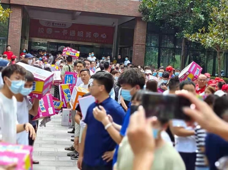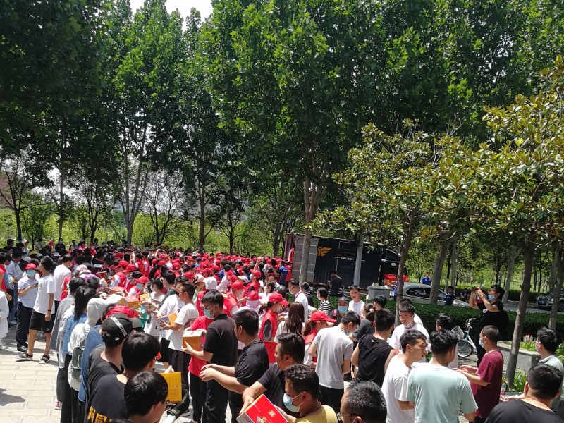 李金峰老师回忆,大家的救灾热情十分高涨,群里要求9点到,8点多现场就排起了长队,很多人还没有排到物资就已经卸载完毕了。李老师讲了一件令他感触颇深的事情:在搬卸方便面时,他和几位男士想帮助几位大姐搬运,其中一位大姐说:“不用,这个我们搬的动。等会大米到了,我们搬不动,你们再来……”这句话触动了李老师的心,水灾无情,但人有情,每个人都在用自己的力量拯救这个充满爱的城市。