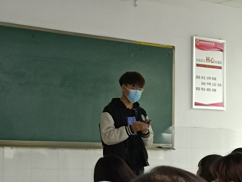 21电子商务2班的邓霏芸同学在课前十分钟为同学们讲述了动人的党史故事,带领同学们回到解放战争年代,共产党人与人民同呼吸,共命运。让红色基因浸入青年大学生的灵魂,让爱国精神薪火相传。