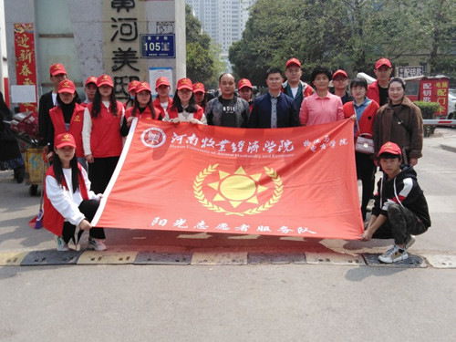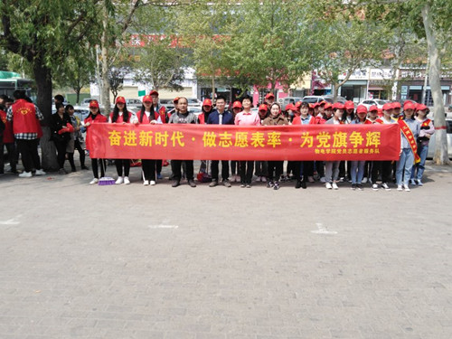 为了进一步培育和践行社会主义核心价值观,深入贯彻习近平新时代中国特色社会主义思想,加强党员与社区居民会的密切联系,增强党员的责任意识和服务意识,共建设美丽绿色社区,助力城市路长制管理模式。4月11日下午1点,迎宾路办事处副主任戴岗、英才社区书记申晶晨与太阳集团tyc234cc团总支书记王玉香、教师党员代表尚津、刘阳、团学会干部代表、学生党员代表共26名同志一同参加了郑州市惠济区迎宾路街道办事处黄河美邸社区,以“奋进新时代、做志愿表率、为党旗争辉”为主题的志愿服务活动。