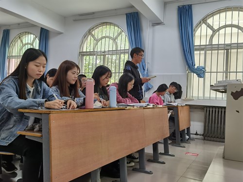 首先,尚津老师为大家简单讲解了此次研读的文章:《党的十九大报告》、《关于新形势下党内政治生活的若干准则》和《习近平总书记系列重要讲话读本》。学生们仔细地聆听,并不断在本子上记录着。随后老师鼓励大家相互展开讨论,说出自己的问题和想法,她也走下讲台,站在学生桌前为他们答疑解惑。讨论结束,尚津老师询问了大家最近在学习和生活上的状况,各个学生轮流发言,与老师展开深入交流。最后,尚津老师对大家提出殷切期望:学习模范党员的优秀品质和高尚精神,以身作则,做好表率,用自己的实际行动维护党的形象,做一名合格党员。至此,会议结束。