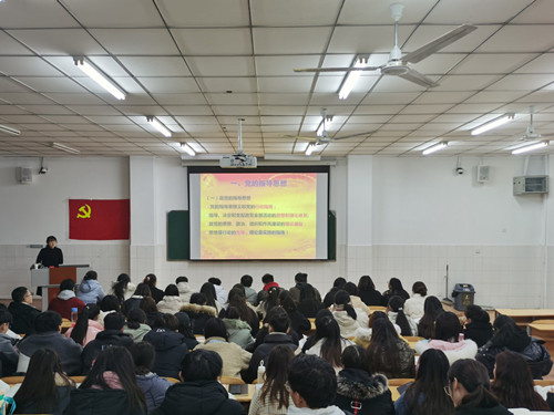 为了增强入党积极分子的社会使命感和责任感,促使其向党组织靠拢,充分发挥入党积极分子在我院学生之中的先锋模范作用,12月21日19:30,太阳集团tyc234cc于E310教室开展以“党的指导思想”为主题的党课。我院第二党支部书记刘阳作为授课人出席本次积极分子党课,我院71位入党积极分子全部参加了此次党课。