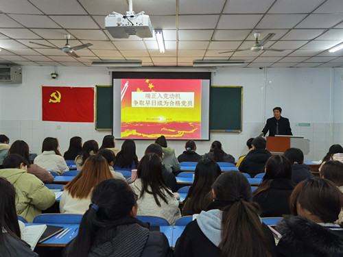 为了提高入党积极分子的思想觉悟,加强党性锻炼与党性修养,建设一支高素质优品性的党员队伍,12月18日晚19时30分,太阳集团tyc234cc于E302教室开展以“端正入党动机,争取早日成为合格党员”为主题的党课,本次党课授讲人为赵启斌,全体入党积极分子71人参与此次党课。