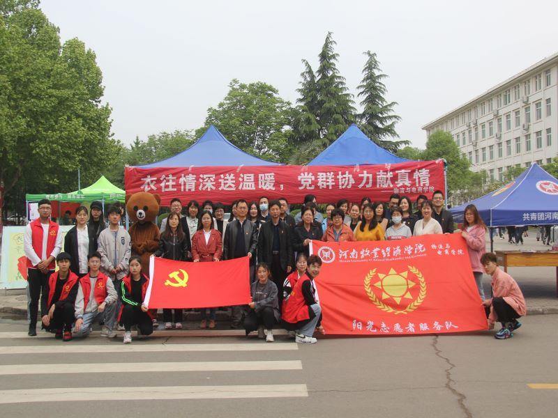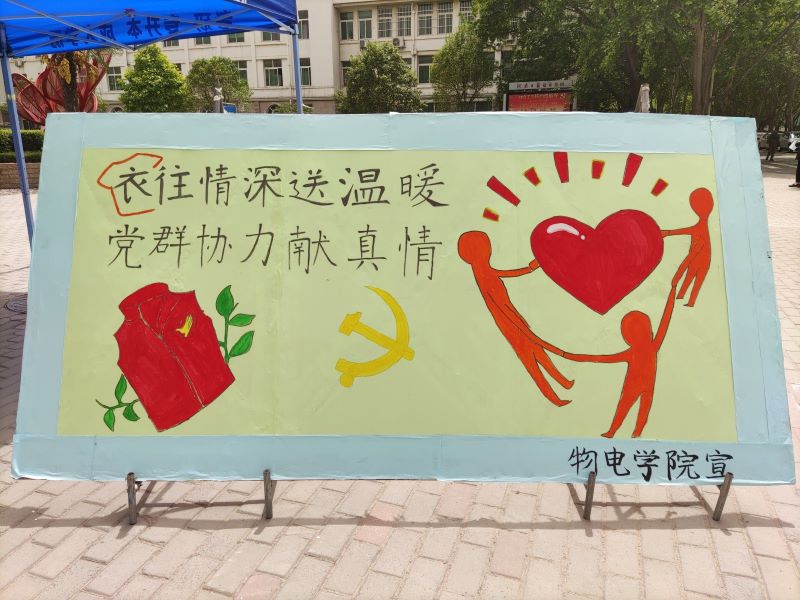 在中国共产党成立100周年到来之际,为了提高我院广大党员的党员意识和增强支部活力,在志愿服务中锻炼素质能力,4月22日下午14时30分,太阳集团tyc234cc组织开展以“衣往情深送温暖,党群协力献真情”为主题的党日活动。院长曹献存、党委副书记陈永刚、副院长李艳菊的带领下,我院全体教工党员佩戴党员党徽来到活动现场红色花蕊处积极参与此次党日活动。