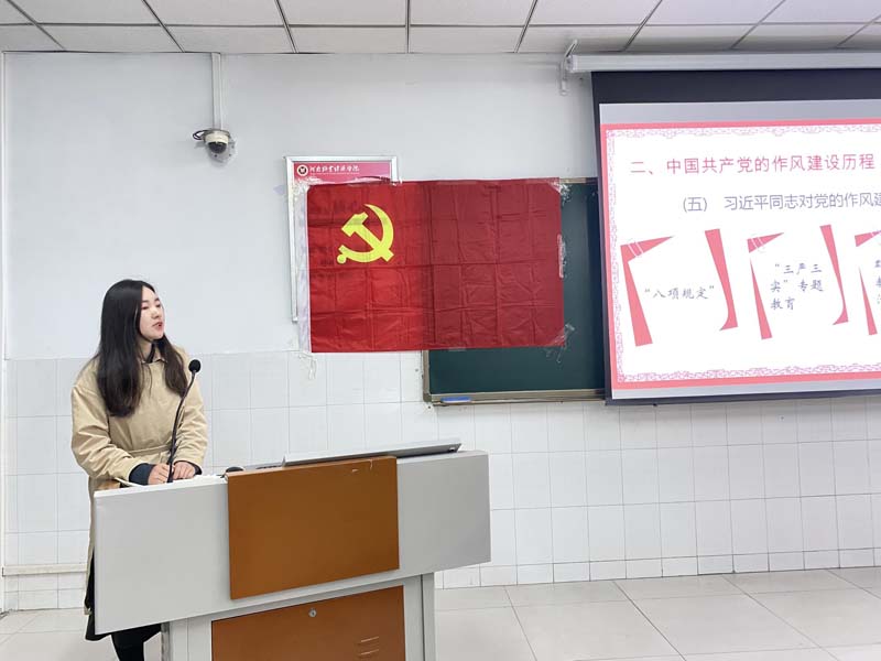 通过结合实际及党的作风建设历史经验和启示,尚津老师希望大家发扬“钉钉子”精神,保持党同人民群众的血肉联系,她告诫同学们,作为新时代大学生,社会主义接班人,更应时刻保持清醒的头脑,与坏风邪气划清界限,注重培养自己的廉洁精神和党员素质,树立自己的理想、信念,注重学习,深刻牢记艰苦奋斗精神,起到先锋模范作用。