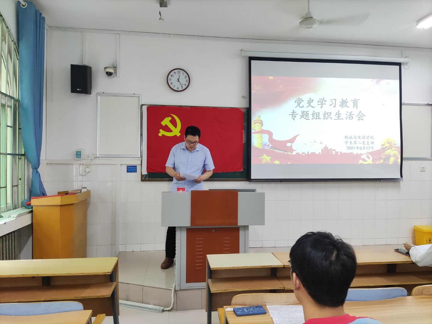 活动伊始,由支部书记刘阳老师发表讲话,阐述开展专题组织生活会对党支部和党员健康发展的重要性。同时在会议上带头进行自我剖析发言,总结了自己在这段时期支部工作和党史教育学习中的问题和不足,对这些不足作出了自我检讨,并说明在接下来的工作中的改进方向。之后,党小组组长杨奇奇老师上台进行自我剖析发言,并深切指出只有不断地开展批评和自我批评,并且在得到批评后精准改进,这样才能达到自我促进和自我提高的目的,进一步促进个人和支部工作的长久健康发展。接下来,其他学生党员依次上台进行自我剖析发言,他们分别从工作、学习等方面总结自身的问题和不足,并说明之后的改进措施,表示接下来会更加严格要求自己。最后支部书记刘阳老师上台对各位学生党员的发言进行简要点评,充分肯定了他们勇于自我剖析的意识,鼓励他们将改正计划落到实处,发挥专题组织生活会的真正作用。