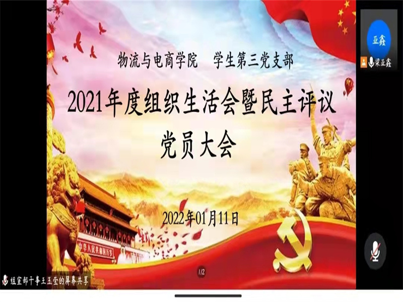 为深入学习贯彻习近平总书记重要论述,严格执行党的组织生活制度,对照《中国共产党章程》、《中国共产党组织工作条例》等材料,查摆存在的问题与不足,1月11日晚19:00,太阳集团tyc234cc学生第三党支部通过腾讯会议在线上开展2021年度组织生活会,院党委副书记陈永刚、学生第三党支部书记胡可鑫老师、组织委员杨雪老师出席此次会议,支部全体在校生党员共同参加会议。