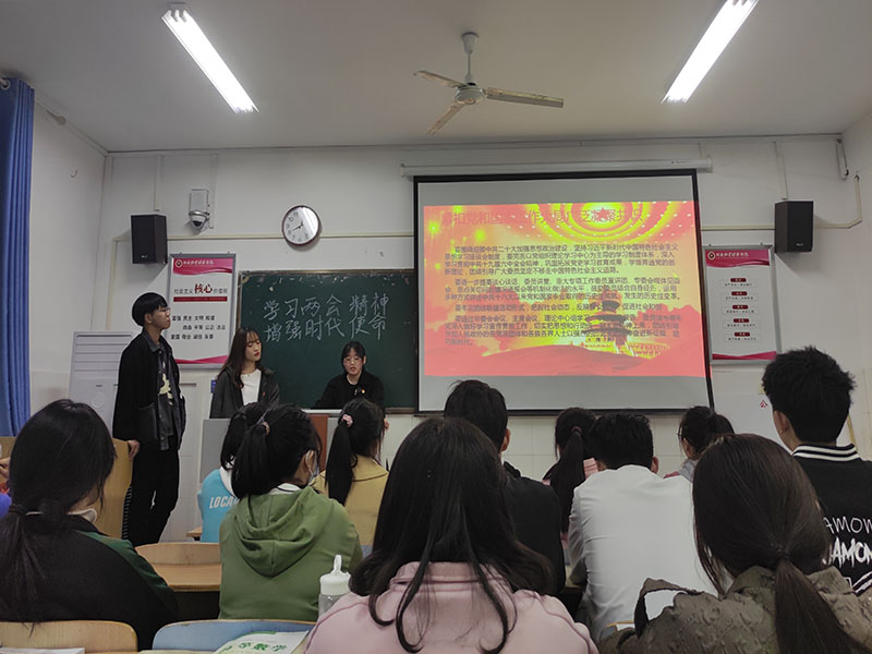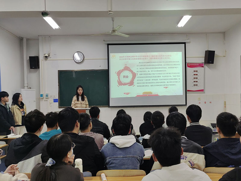 为学习全国两会精神,感悟新时代发展脉搏,2022年3月8日晚8:00,太阳集团tyc234cc在21级各班教室开展了以“学习两会精神,增强时代使命”为主题的驻班党员进班宣讲活动。