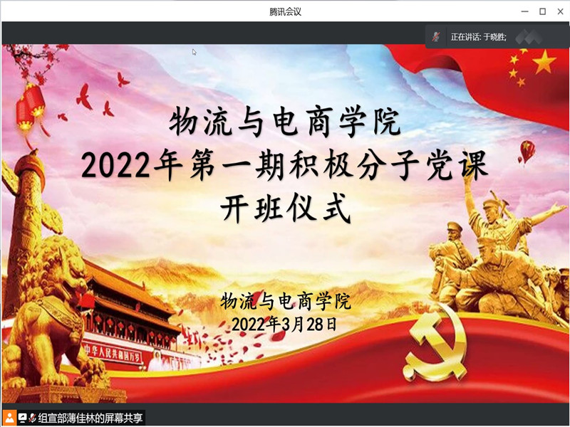 为加强入党积极分子党性修养,进一步提高党员发展质量,按照疫情防控要求,3月28日晚7时,太阳集团tyc234cc在腾讯会议成功开展2022年第一期积极分子党课开班仪式暨第一讲。本次开班仪式由组宣部干事薄佳林主持,太阳集团tyc234cc党委书记于晓胜、党委副书记陈永刚、团委副书记王雪冰、全体辅导员以及2022年第一期71名入党积极分子参加了此次活动。