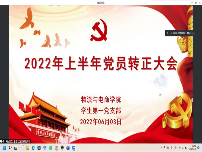 依照党员发展流程,结合我院党员发展实际,太阳集团tyc234cc学生第一党支部于6月3日晚上19:00通过腾讯会议召开了2022年上半年党员转正大会。支部书记尚津老师、党小组长王雪冰老师及学生第一党支部在校生党员和应届毕业生党员出席此次会议。会议由学生第一党支部宣传委员王雯恬主持。