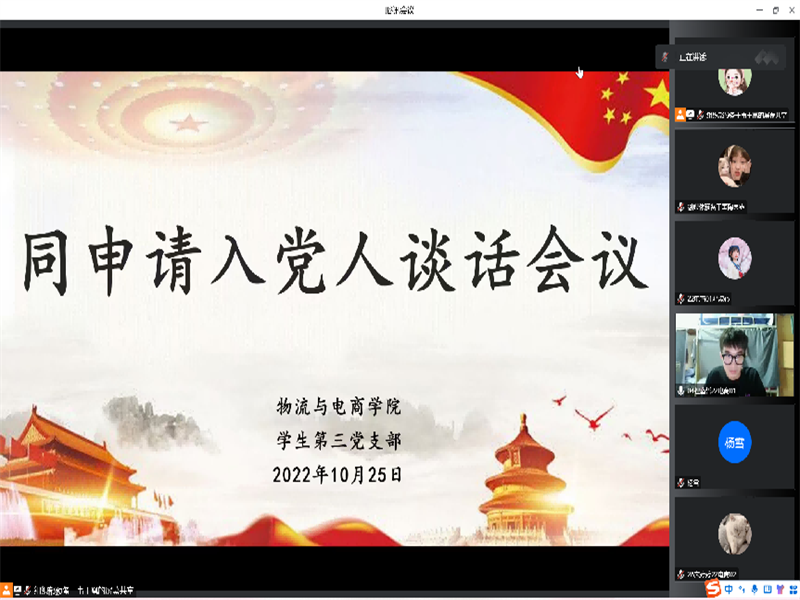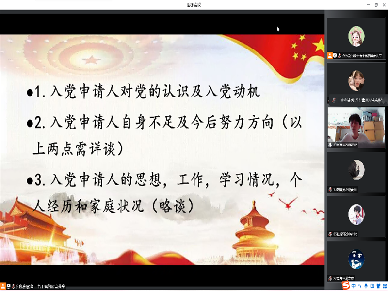 为帮助入党申请人进一步提高对党的认识,端正入党动机,进一步从思想上、能力上、作风上入党,树立政治信念,加强党性修养,结合疫情防控要求,太阳集团tyc234cc于10月25日12时20分在线上开展了学生第三党支部同申请入党人谈话会议。太阳集团tyc234cc学生第三党支部书记杨雪老师出席了本次会议,学生第三党支部120位入党申请人参加了此次会议。