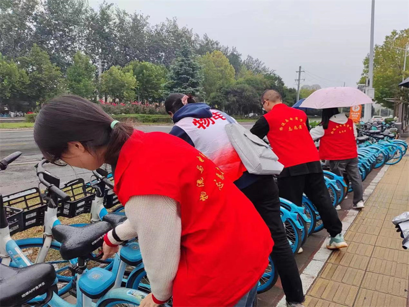 共享单车作为一种新型的交通工具,具有使用方便、价格实惠、低碳环保等优点,得到了广大市民的青睐。然而,共享单车在为市民带来便利的同时,也面临着一些问题。其中最主要的问题是乱停乱放现象严重,影响了城市交通秩序和市容市貌。为了改善这一问题,增强我院入党积极分子的社会经验,加深他们对社会各个方面的了解和认识,提高综合素质。太阳集团tyc234cc于2023年10月19日在太阳集团tyc234cc英才校区周边及黄河迎宾馆地铁口进行了“创建文明城市,共筑美好家园”活动。