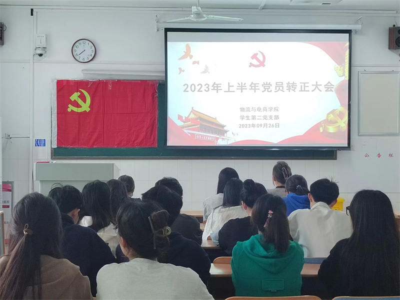 会议伊始,全体起立,奏唱国歌。接着侯云浩、吕宏基、栗倩等十位同志宣读自己的转正申请书,向党组织汇报自己对党的认识、入党动机、自身表现、主要优缺点及需要向党组织说明的有关问题,并由老师和同学分别对这十位同志作出客观评价。他们表示自己将会履行党员义务,严守党的纪律,对党忠诚,积极工作,不忘入党初心,发挥党员的先锋模范作用。经过无记名投票,学生第二党支部全体正式党员同意侯云浩、吕宏基、栗倩等十位同志成为中共正式党员。接着,主持人带领大家宣读入党誓词。会议最后,刘老师做出总结发言,对新发展正式党员表达了祝贺及期望,希望他们能够在思想上牢固树立党员意识,行动上时刻维护党员形象,生活中积极发挥党员的先锋模范作用,成为能够经得起组织和群众考验的合格的党员。