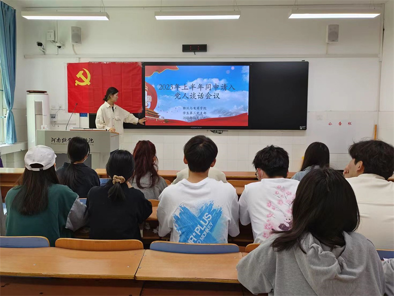 会议伊始,由入党申请人对自己的基本情况、党的认识及入党动机等问题进行阐述。在谈到入党动机时,入党申请人们都能够秉持着实事求是的态度回答,表现出要献身于共产主义事业、更好地为人民服务的决心,并表示在未来会认真的学习党的基本理论知识,从身边的小事做起,提升自己的理论修养,加深对共产主义事业的认识,端正入党动机。然后,入党申请人对自身的不足进行了系统的剖析并对今后努力的方向进行了全面的阐述,他们表示要克服自身的不足,加强自身的建设,真正的从思想上入党,一生信仰共产主义,一生忠于党的事业,坚定信念,执着追求,与时俱进,向党组织靠拢。会议最后,杨雪老师做会议总结,杨老师对入党申请人强调要以实际行动争取早日入党,并要求入党申请人要增强学习,将谈话内容落实到位,利用相关平台和网站学习,加强理论知识,培养大局意识、看齐意识、政治意识、核心意识,自觉投身于中国特色社会主义伟大事业中。