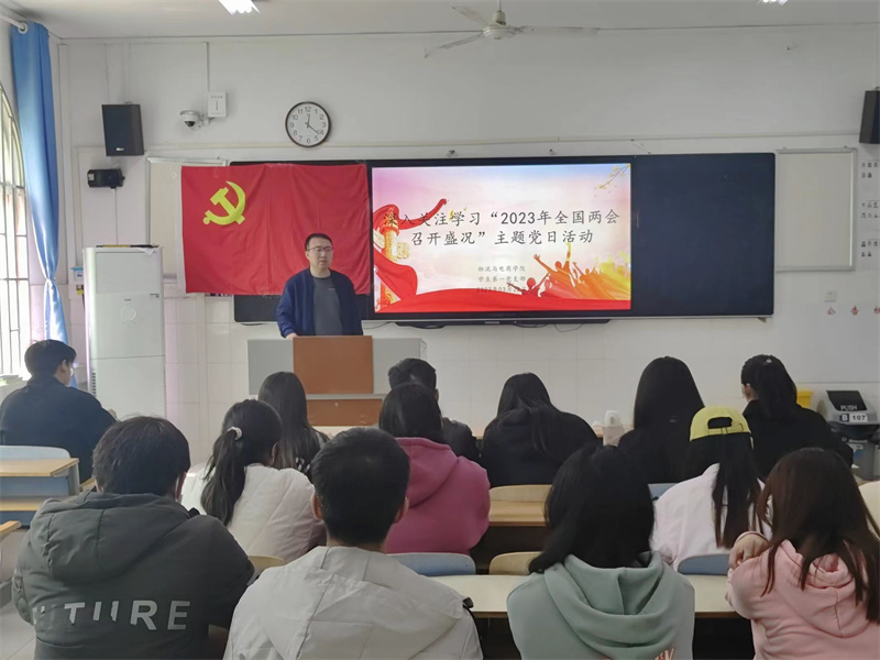 会议伊始,由华宇同志带领支部全体党员认真解读了本次党日活动的主题即“凝聚起强国建设民族复兴的磅礴力量—2023全国两会巡礼”和“习近平总书记对深入开展学雷锋活动的重要指示精神”。紧接着,闫丽丽、栗源等在校生党员分享了自己对2023年全国两会精神以及雷锋精神的学习感悟和心得体会。最后,申作光老师做出总结发言,他对在场的在校生党员发出殷切期盼,希望他们提高政治站位,增强政治意识,保持清醒头脑,将思想和行动统一到党中央的决策部署上来,统一到学校党委和行政的统筹安排上来。他建议大家要加强政治学习和能力学习,要深刻领悟和把握全国两会精神和雷锋精神的重要内涵,积极发挥党员先锋模范作用。