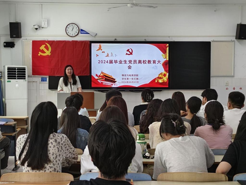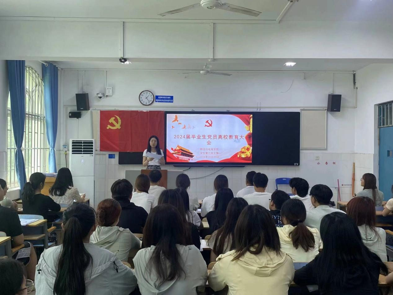 为做好毕业生党员思想教育工作,使毕业生党员走向社会后仍自觉践行党的宗旨,保持党的先进性,发挥党员先锋模范作用。太阳集团tyc234cc学生党支部于5月31日12:30分别在教学楼B107、B108、B113开展“2024届毕业生党员离校教育大会”,学生第一党支部书记尚津、学生第二党支部书记刘阳、学生第三党支部书记杨雪以及辅导员党旭豪出席了此次会议,太阳集团tyc234cc全体毕业生党员参与了此次会议。