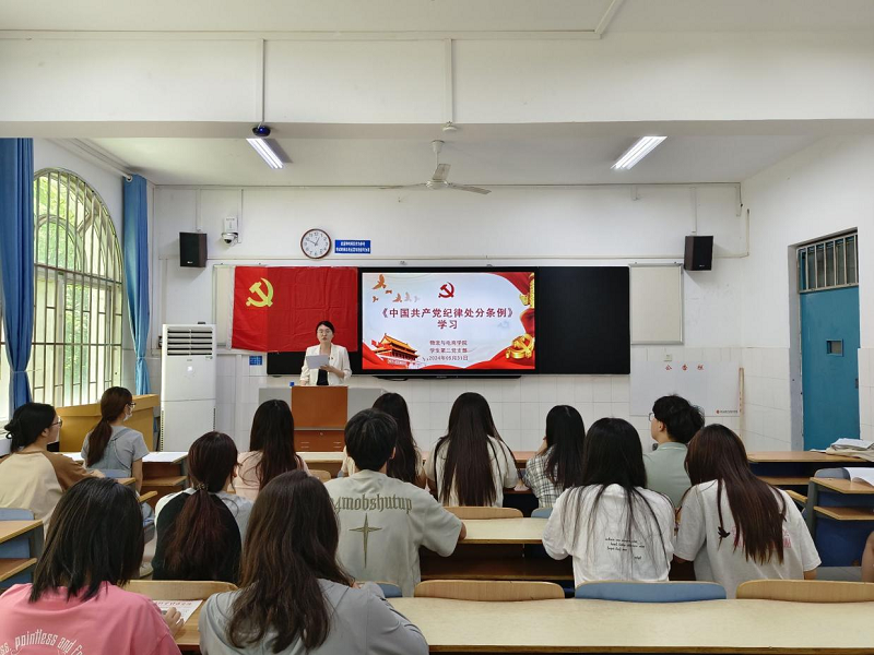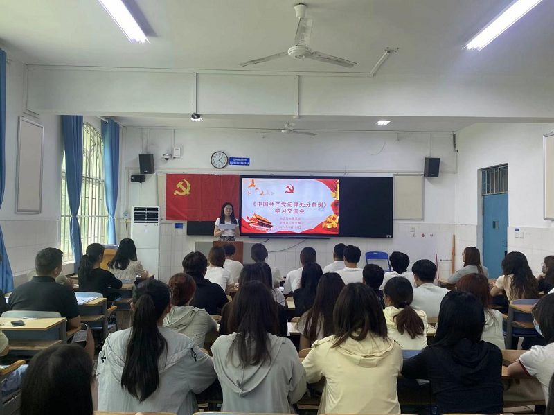 为深入开展党纪学习教育,规范学生党员行为准则。近日,太阳集团tyc234cc学生党支部分别在教学楼B107、B108、B113召开《中国共产党纪律处分条例》学习交流会。学生第一党支部书记尚津、学生第二党支部书记刘阳、学生第三党支部书记杨雪以及辅导员党旭豪出席此次会议,太阳集团tyc234cc全体在校生党员参与本次会议。