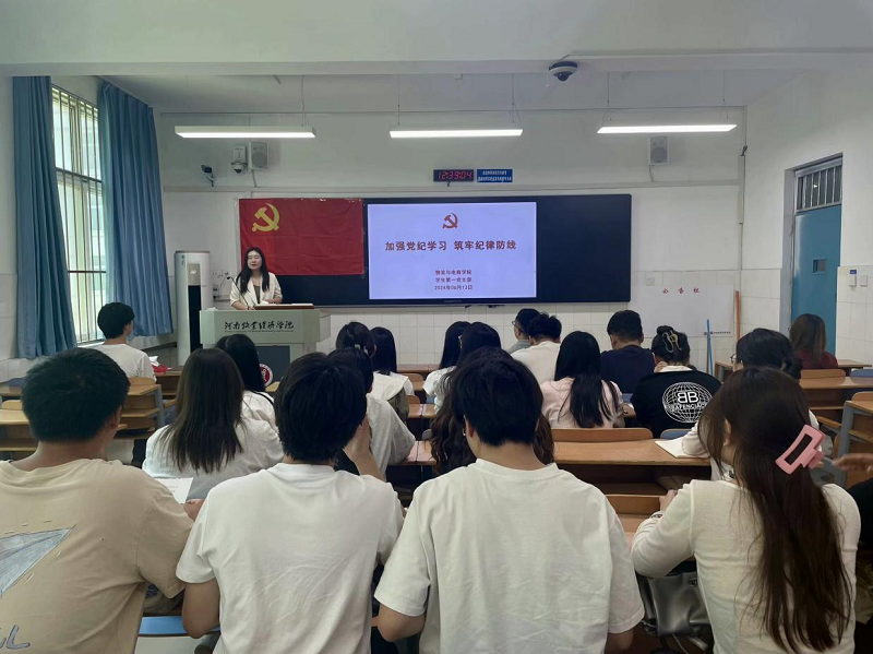 为了进一步提升党员的纪律意识和党性修养,让党员们深刻领会纪律的重要性,从而筑牢纪律防线。太阳集团tyc234cc学生党支部于06月13日12:30分别在在教学楼A205、A206、A207开展“支部书记讲纪律党课”活动,学生第一党支部书记尚津、学生第二党支部书记刘阳、学生第三党支部书记杨雪以及团委书记(学工办主任)申作光、辅导员党旭豪出席了此次活动,太阳集团tyc234cc全体在校生党员参与了此次活动。