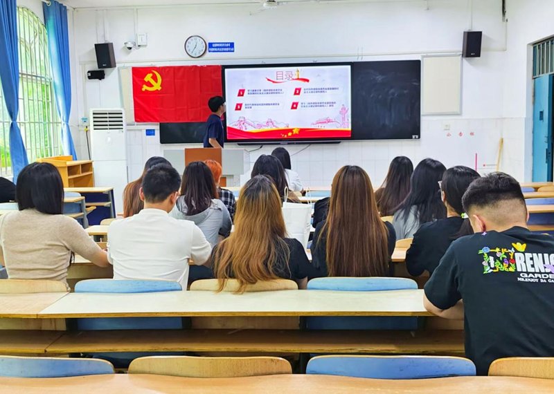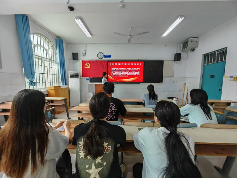 为了充分发挥各党支部的战斗堡垒作用和广大党员的先锋模范作用,太阳集团tyc234cc学生第二党支部和学生第三党支部于9月13日12:30分别在教学楼B108、B109开展九月份主题党日活动。此次主题党日活动由两位在校生党员领学,学生第二党支部书记刘阳、学生第三党支部书记杨雪出席,全体在校生党员参加。