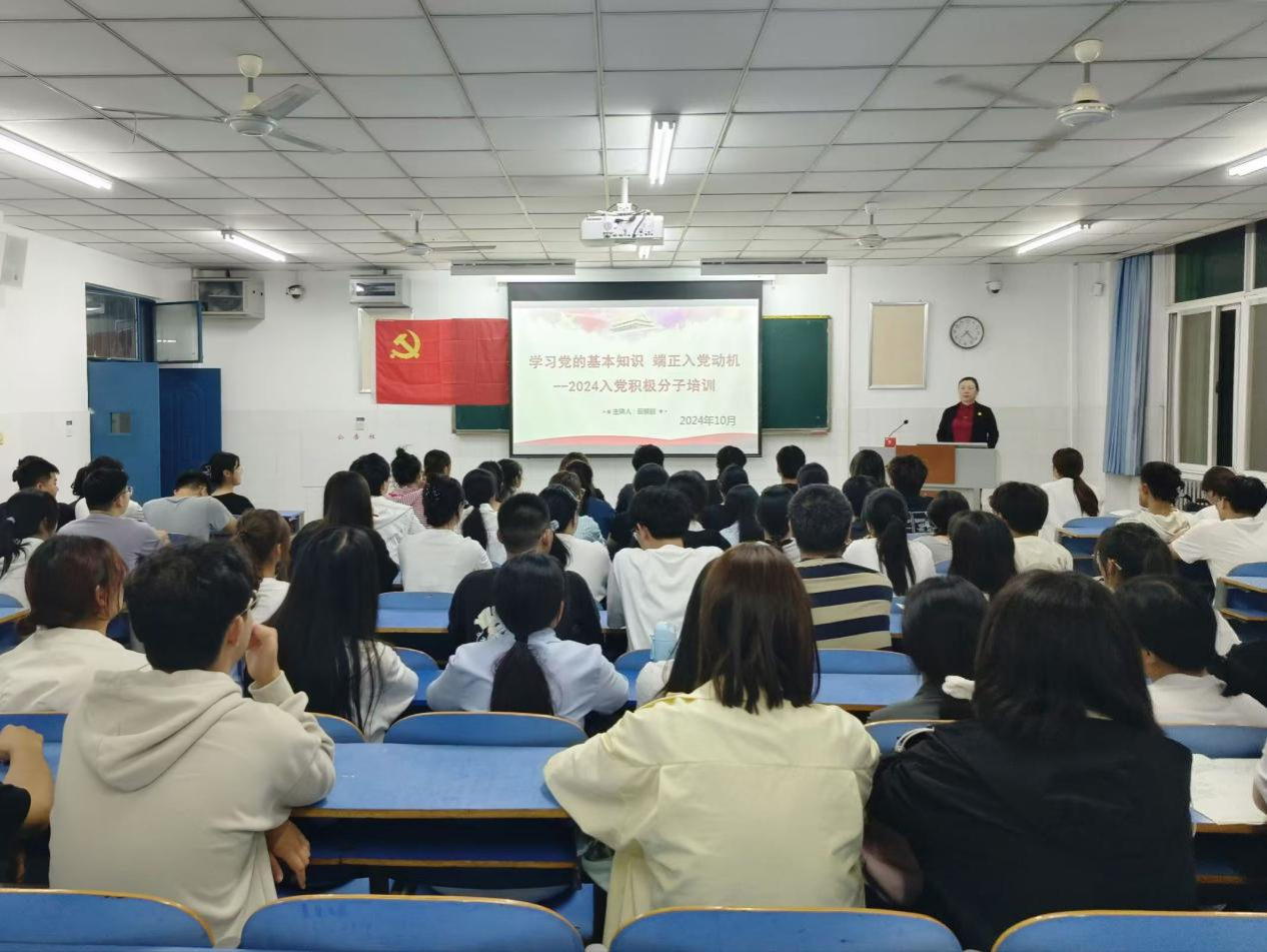 为深入学习贯彻党的二十大精神,进一步加深入党积极分子对党的认识与了解,切实保证我院新发展党员的质量,太阳集团tyc234cc于10月14日晚上19时在教学楼E307开展2024年第二期入党积极分子培训班开班仪式暨第一讲。太阳集团tyc234cc党委书记田景丽、党委副书记陈永刚、团委书记(学工办主任)申作光、团委副书记(学工办副主任)尚津、学生党支部书记刘阳、杨雪出席本次会议,2024年第二期入党积极分子参与此次培训。