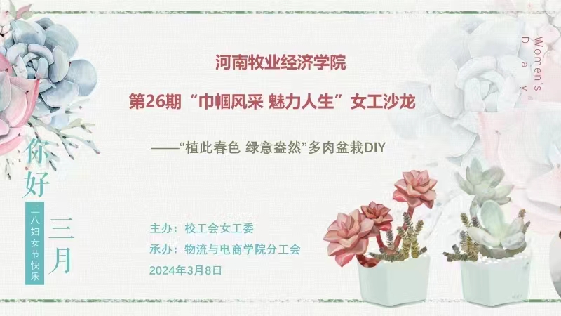 本次沙龙活动以“植此春色,绿意盎然”多肉盆栽DIY为主题,老师们亲自动手感受园艺的乐趣。活动现场,郑州市尚品花艺培训中心的张丽老师为大家讲解了多肉栽培养护知识、种植方法与步骤。DIY环节,大家变身巧手花匠,将不同种类的多肉植物搭配在一起,经过精心的配色、摆盘、种植、铺面、装饰,一盆盆色彩丰富、清新淡雅的多肉盆栽种植完成。种植这些多肉需要用心呵护它们的成长,象征着女性的美丽与坚强,与本次沙龙主题相呼应。