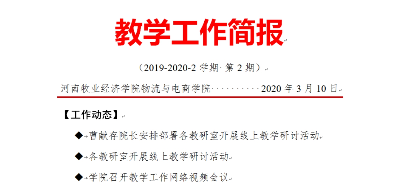 疫情期间,我院切实落实了“停课不停学、停课不停教”的工作要求,并按照《太阳集团tyc234cc关于延迟开学期间组织开展网络教学的工作方案》扎实开展各项工作。为了及时总结线上教育经验,发现问题并持续改进线上教学效果,我院物流管理、冷链物流、电子商务、网络营销四个教研室采用视频会议的形式于2月21日至2月22日召开了线上教学研讨活动。