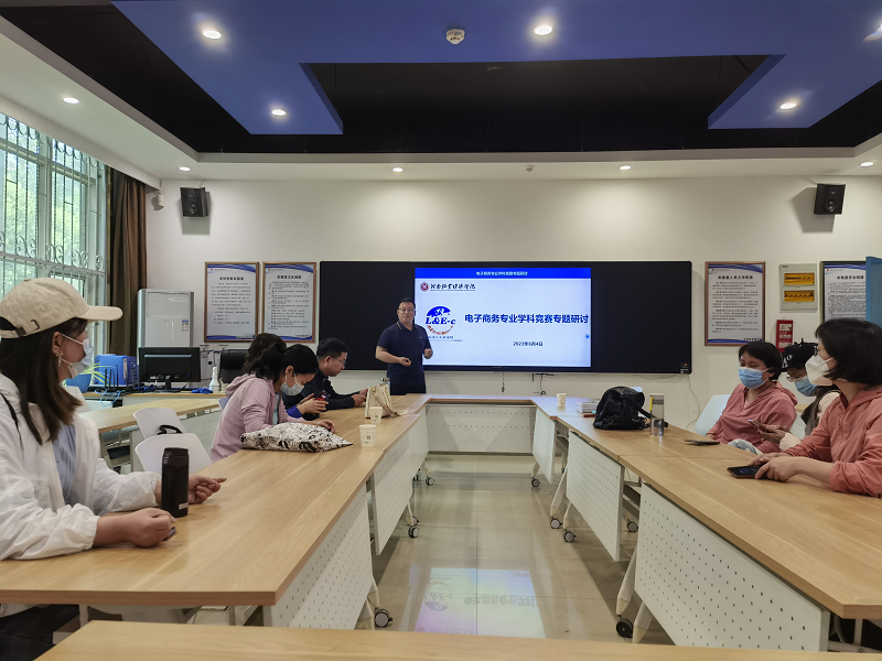 大学生学科竞赛是以学科专业为依托开展的学业成果竞技展评活动,是培养大学生创新意识、创新精神和创业实践能力的有效载体,是高校构建一流创新生态、助力建设国家创新高地的重要抓手。为了响应河南省《关于加强普通高等学校大学生学科竞赛工作的指导意见》,发挥学科竞赛在电子商务专业人才培养中的作用,提升电子商务专业学生学科竞赛的质量。电子商务专业于2023年6月4日上午10:00在S107开展了电子商务专业学科竞赛专题研讨会,会议由电子商务教研室主任殷猛博士主持,电子商务教研室、网络营销教研室全体教师出席会议。