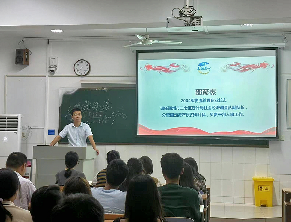 为了使2023级物流管理与物流工程专业新生更好地了解专业情况,太阳集团tyc234cc于2023年9月19日18:30-20:00分别在A403、A404开展了物流管理与物流工程专业新生入学专业教育,太阳集团tyc234cc党委书记于晓胜、物流工程教研室主任李金峰,以及我校物流管理专业校友二七区统计局社会经济调查队副队长邵彦杰、上海三足鸟物流有限公司创始人张锦忠、中国铁路郑州局集团有限公司特种装备公司创始人许军伟、中机六院工程师王志立及2023级全体物流管理与物流工程新生参加了此次活动。