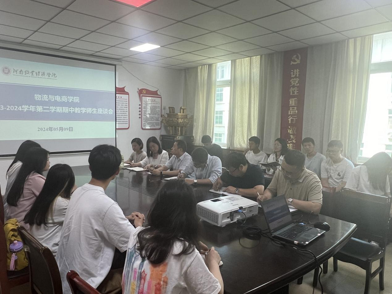 为了进一步提高课堂教学质量,了解学生的思想动态和学习生活状况,扎实推进日常教学和学生管理工作见实效,物流与电商学院于2024年5月9日中午13:00在英才校区312会议室召开了本学期期中教学工作师生座谈会,副院长任佳佳、物流管理教研室主任刘博老师、电子商务教研室主任殷猛副教授、物流工程教研室主任李金峰博士、网络营销教研室主任李娜副教授、实验室管理中心肖丽平副教授和各班学习委员参加了座谈会,会议由任佳佳副院长主持。