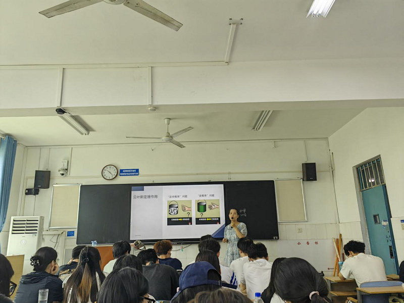 郑建华老师重点讲解了信息更新模型——贝叶斯决策,期间通过详细讲授、课堂讨论、提问、分组完成任务等形式引导学生深入学习,期间巧妙融入课堂思政元素,学教并重。在课程最后,郑建华老师对贝叶斯决策的重难点进行梳理,并布置课堂练习和课下学习任务,及时检查和巩固学习效果。郑建华老师的课堂讲授准备充分,内容丰富,课件精美,思路清晰,语言富有感染力,师生互动良好,能够启发和鼓励学生思考,同时又充分体现了授课教师自身的鲜明特点,充分展示了我院优秀青年教师的教学风采。