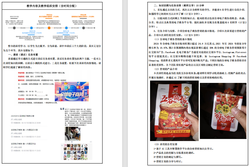 我院全体任课教师参加了此次教学设计创新大赛,参赛教师将“学生中心”“课程育人”的教学理念充分融入教学设计,其中,殷猛老师在《全球电子商务》课程的“全球电子商务营销方案策划”部分的教学设计里,通过Notion AI整理和归纳课程资料,生成结构化的学习资源,借助Deepseek生成课程相关的知识点总结和练习题,将课程资源导入到学习通平台,并在课前、课中、课后全过程使用学习通进行课前预习、任务布置、课堂签到、课中抢答、课后作业、课后小测等环节。张朦朦老师在《电商平台视觉设计综合》课程的“微信小程序界面设计”部分的教学设计里,借助 AI工具,基于递进式任务序列,运用师生共创的五共教学方法,发挥评价考核的导向效能激励作用,以讲练+成果数据支持教学,通过“任务驱动”“朋辈驱动”“效能驱动”“数据驱动”四轮驱动引导学生达成深度学习。张睿智老师在《物流空间学》课程的“AI+Arcgis 驱动的《物流空间学》理实一体教学设计”中使用对分课堂教学法,同时利用 AI 生成预习包,根据学生回答自动推送相关文献与案例。基于开放数据集(如国家物流枢纽数据),学生通过 AI工具(如 Google Colab)完成基础数据清洗与可视化,预习报告提交至学习平台。孙红霞老师在《供应链管理(双语)》课程的“供应链弹性理论”的教学设计中再用“案例分析→理论阐释→应用分析→思考总结”的授课模式,通过科研反哺教学,采用撰写科研论文的逻辑思路进行模块化授课,基于阿里巴巴全球供应链面对疫情表现出了强大的供应链弹性为案例引入,进而引出“弹性供应链理论 ”,从而解释弹性供应链对企业生存的重要性,并提出在疫情常态化下企业增加弹性相应的对策建议。王俊涛老师在《物流系统规划与设计》课程的“物流中心选址——精确重心法”部分的教学设计里,运用BOPPPS教学法+线上线下混合教学模式,线上基于学习通平台学习,并通过线上习题,测试学生基础知识学习和掌握程度。线下进行知识梳理和重难点讲解。并结合课堂讨论和任务,激发学生主观能动性,提升学生创新能力。在教学过程中,通过AI虚拟实验环境模拟实际的物流设施选址场景,利用AI智能教学系统,实时收集学生的课堂反馈。张腊梅老师在《工程制图》课程的“投影法及三视图的形成”的教学设计里,利用AI增强思政案例的趣味性,例如,讲制图发展史时,用AI让加斯帕·蒙日的老照片活起来,自己讲述自己的故事;讲三视图时用AI技术将梁思政誉为“中国建筑第一瑰宝”的山西五台山佛光寺大殿和梁思成的手稿图结合做成动画……让枯燥的案例变得生动有趣,渗透思政元素的同时,激发学生探索新知的兴趣。……精彩纷呈的教学设计充分展现了我院教师扎实的教学功底和较高的教学水平。