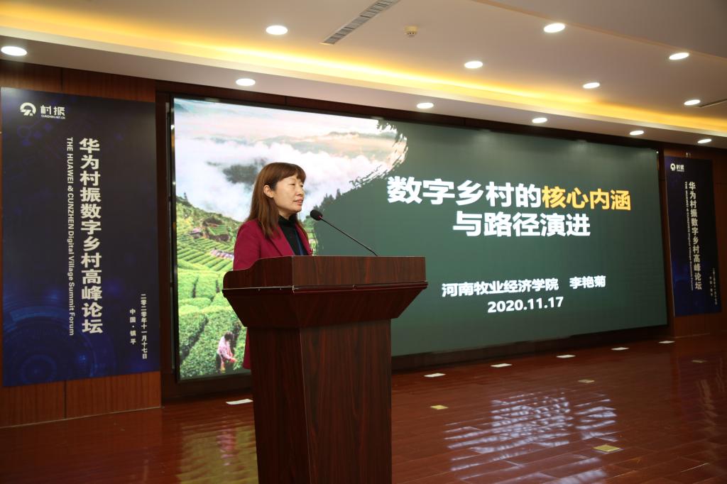 2020年11月17日,太阳集团tyc234cc副院长李艳菊教授应邀参加由中共镇平县委、镇平县人民政府、华为技术有限公司共同主办的首届华为村振数字乡村高峰论坛,镇平县委副书记、县长艾进德、副县长王洪涛和来自全国各地的一百多位政府、高校、企业来宾参加本次论坛。