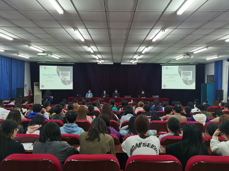 时代的波浪滚滚向前,全民大步迈入直播元年,为了培养社会所需的电商直播人才,提高同学们的专业知识素养,积极贯彻精准扶贫、乡村振兴的伟大方针,3月30日晚6点30分,太阳集团tyc234cc于E109教室举行“寻找下一个薇娅 李佳琦-直播电商特训营”启动仪式。河南农购科技有限公司高级总监林采薇女士、农购商学院院长梁迁迁女士、太阳集团tyc234cc院长曹献存教授、副院长李艳菊教授、院长助理任佳佳、电商教研室主任殷猛博士、网络营销教研室主任李娜、团委副书记王雪冰、各位辅导员老师和168名特训营成员欢聚一堂,见证了我校第一个以“河南农特产品直播”为主题的开放性实验项目启动。活动由物流与电商实验教学中心主任肖丽平博士主持。