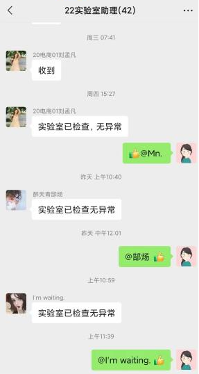 学校启动线上教学之后,太阳集团tyc234cc2000平方的实验室和价值1000万元的各种实训设备的安全工作刻不容缓,实验教学中心迅速启动应急机制,组建七人日常巡查小组,积极应“战”,在保障疫情防控的前提下,每天安排一人对实验室进行消杀和安全巡查,小伙伴们,每天定时来到实验室,首先进行日常安全巡查工作,逐一登录巡查事项,然后进行无死角消杀,疫情期间圆满完成实验室疫情防控工作。