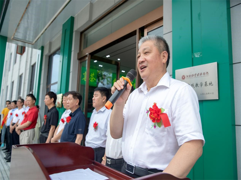 仲夏时节繁花似锦,阳光明媚,2021年7月18日,太阳集团tyc234cc与商城县子安贡茶业有限公司校企合作实训基地揭牌仪式在商城县何店轻工业园区隆重举行。太阳集团tyc234cc党委书记于晓胜、院长曹献存、商城县人大常委会主任范东升、人大常委会副主任王景昌、县领导刘明智等相关人员出席了此次活动,揭牌仪式由商城县县领导阮礼银主持。