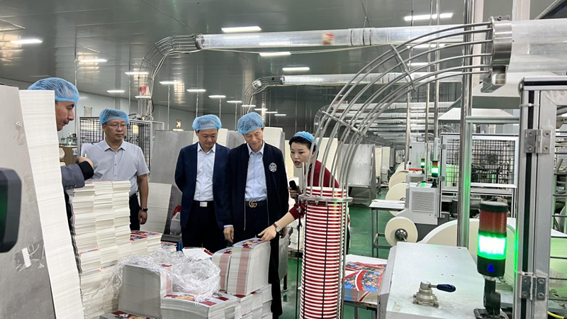 曹献存院长一行首先来到钜富邦纸制品有限公司了解酸辣粉纸碗的生产工艺流程、设备配置、产品质量保障措施以及物流配送情况。据了解,该公司是酸辣粉产业链的重要配套企业,现拥有96条专业生产线,年产近18亿套纸碗。目前为食族人、丽星、豫道等百余家酸辣粉企业提供纸碗包装,其生产的酸辣粉纸碗占据了中部六省60%的市场份额,为通许县的酸辣粉产业提供了强有力的包装支持。