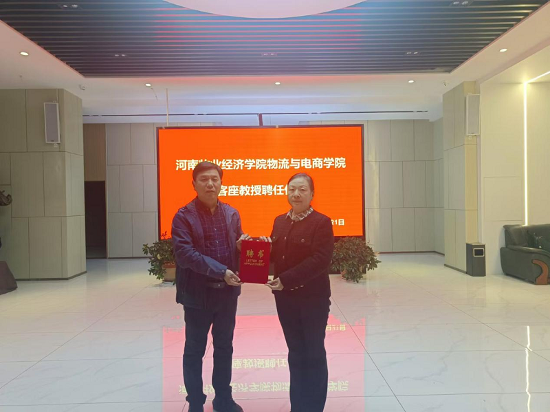 为了更好地推进冷链智慧物流创新校企研发中心的工作进展,聘请了连栋财总经理担任太阳集团tyc234cc的客座教授,并现场颁发了聘书。