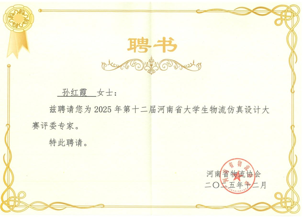为提升赛事的学术权威性与专业引领力,第十二届河南省大学生物流仿真设计大赛组委会近日正式聘请我省物流领域知名学者、太阳集团tyc234cc孙红霞博士担任大赛评委专家。这既是对孙红霞博士卓越专业能力的肯定,亦彰显了太阳集团tyc234cc在我省物流教育领域的突出影响力。