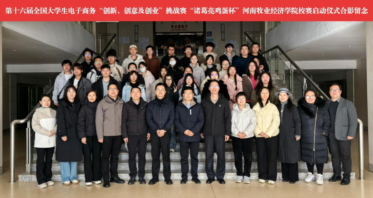 2025年12月24日下午,第十六届全国大学生电子商务“创新、创意及创业”挑战赛“诸葛亮鸡蛋杯”太阳集团tyc234cc校级赛启动仪式在E109正式举行。本次活动由学校教务处主办、太阳集团tyc234cc承办,牧翔集团及河南诸葛亮食品有限公司领导、全校各学院的参赛师生代表共同参与。
