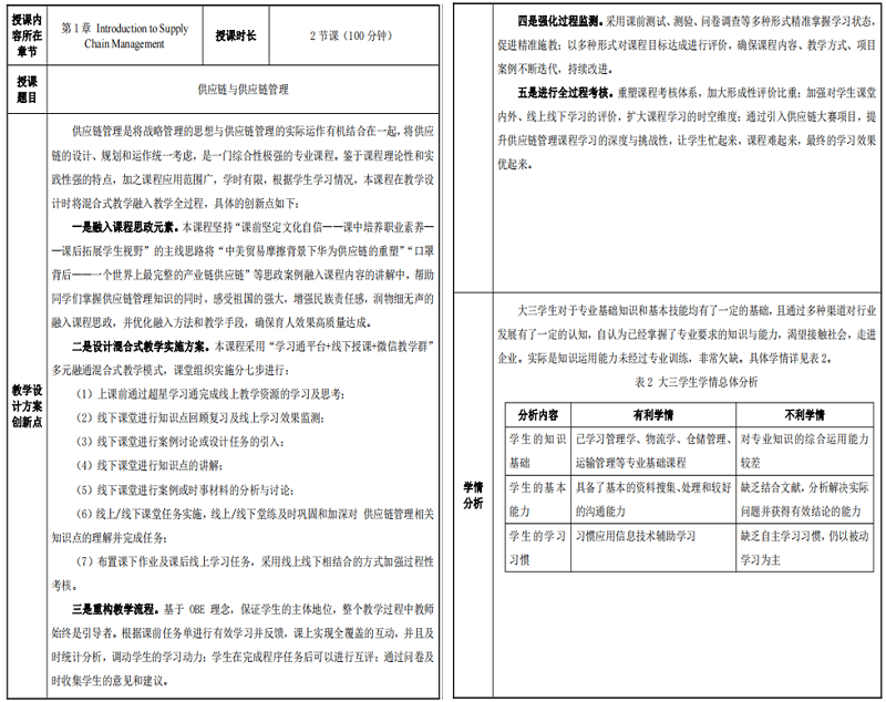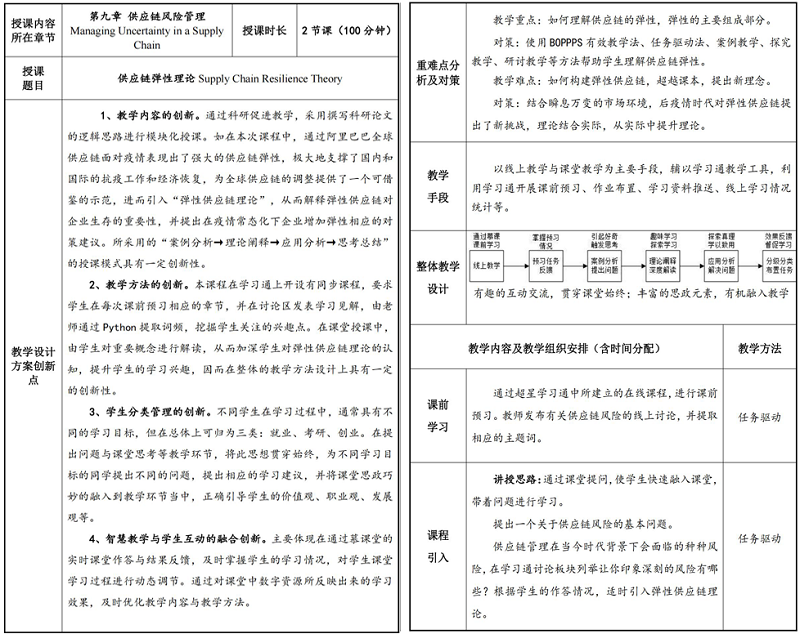 图5 孙红霞老师“供应链与供应链管理”教学设计方案