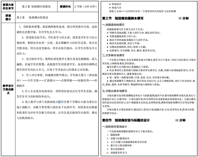 图3 肖丽平老师“短视频内容策划”教学设计方案