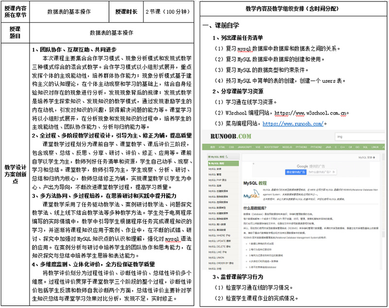 图6 殷猛老师“数据表的基本操作”教学设计方案