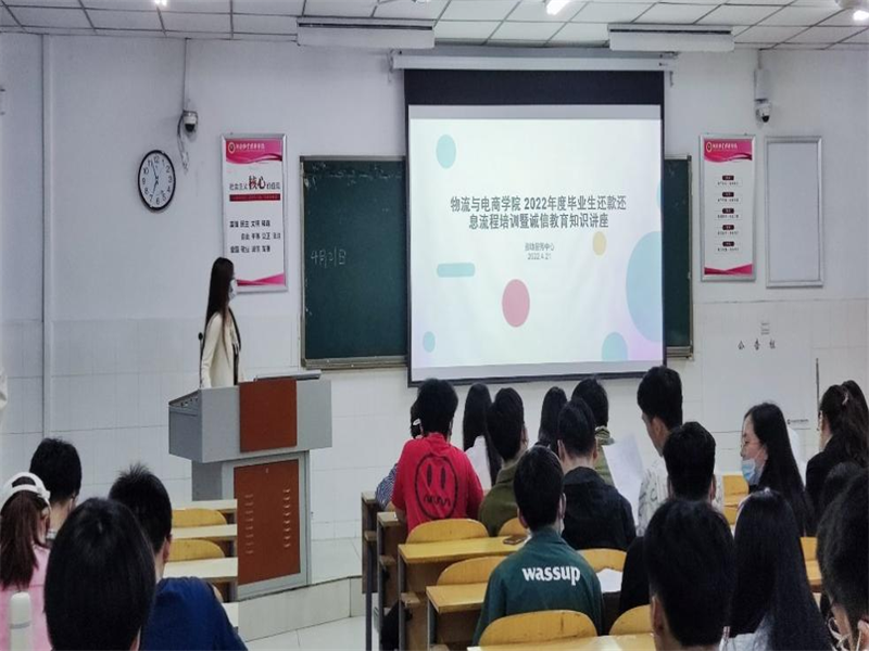 为帮助广大学子切实树立诚信为本的理念,促进国家助学贷款工作有序进行,4月21日晚19时,太阳集团tyc234cc在W107举办了2022年毕业生还款还息流程培训暨诚信教育讲座。本次讲座由我院资助服务中心人员主讲,18、19、20、21级各班资助负责人及贷款毕业生参加了本次讲座。