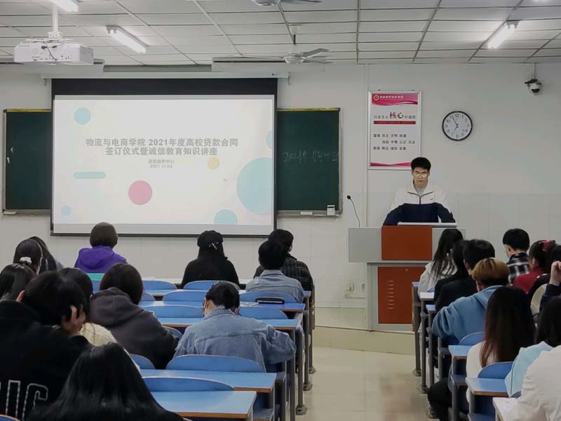 为加大资助政策宣传力度,让学生们深入了解高校贷款相关规定,11月4日晚上七点,太阳集团tyc234cc资助服务中心在E303教室成功举办了2021-2022学年高校贷款合同签订仪式暨诚信教育知识讲座。本次活动由资助服务中心干事主持召开,参与本次活动的有生源地贷款的学生以及2021年申请高校助学贷款的学生。